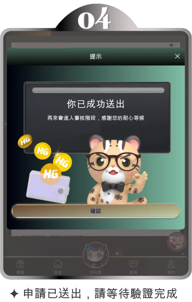 樂遊石虎書記官恭喜你,完成託售的步驟了! 同時,你也完成了新手任務,趕緊去領取優惠吧!